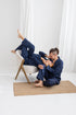Navy Blue Windowpane Linen Pajama Set For Couple